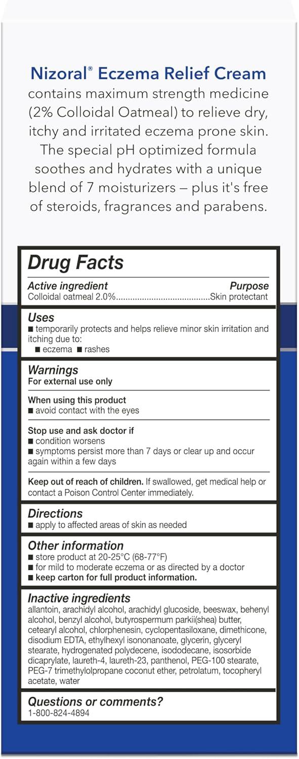 Nizoral Eczema Relief Cream- Relieves Dry, Itchy, Irritated Skin, Soothes and Hydrates with 7 Moisturizers, Colloidal Oatmeal 2%, 4 Fl Oz(4 Ounce (Pack of 1))